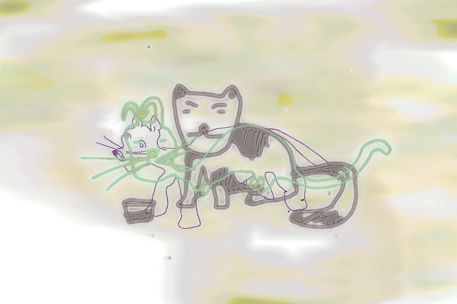 By manipulation of image, Eglė inquires: What do cats dream about? What do they see when they dream of each other?