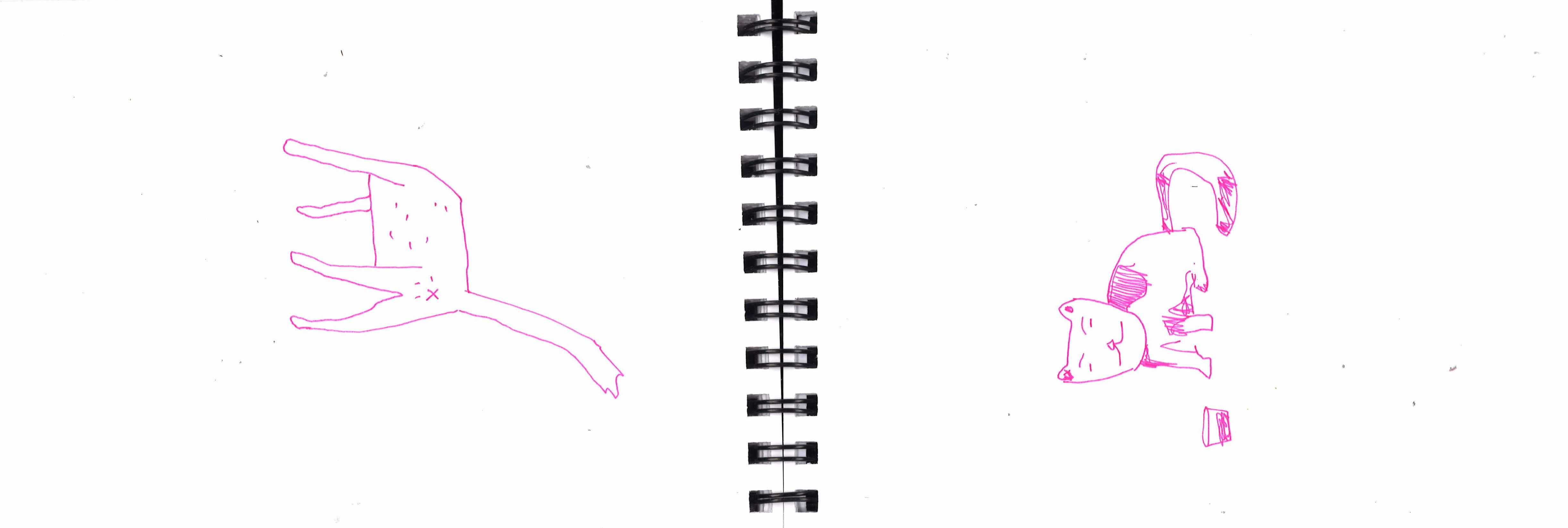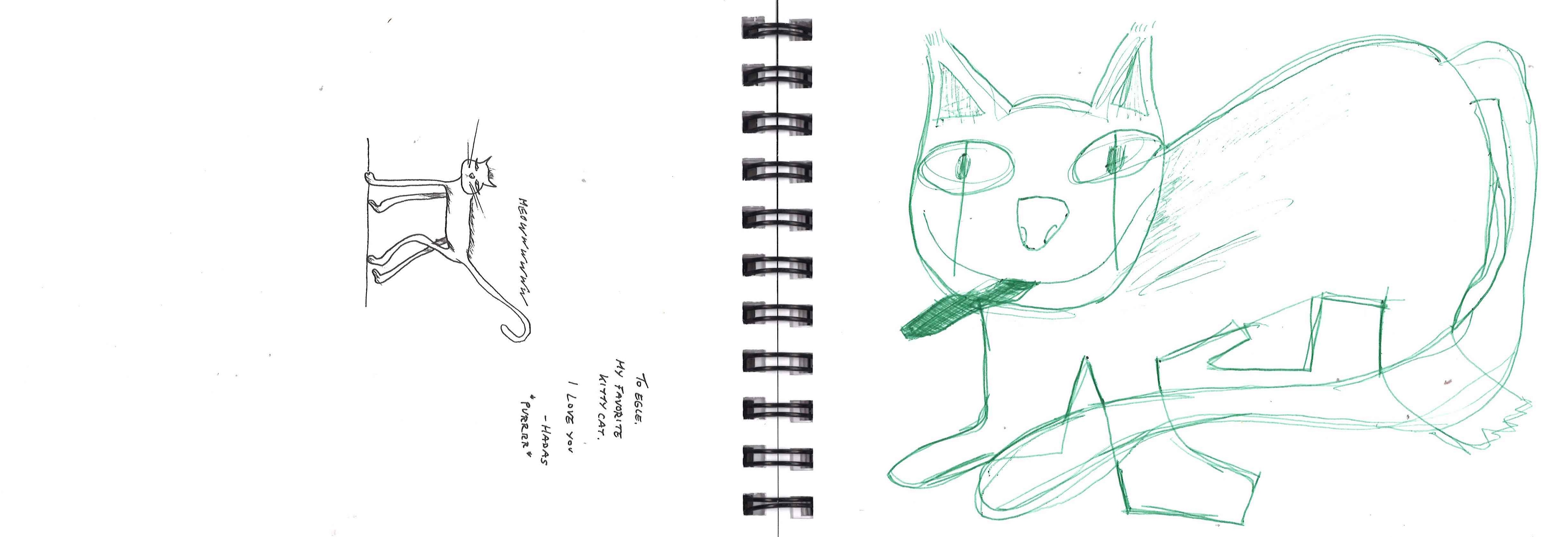 The collected drawings, like real memories, are distorted til a point of reduced recognition.