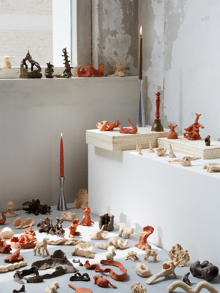that challenged participants to create small clay sculptures around aetiological creationist tales of land and creatures.