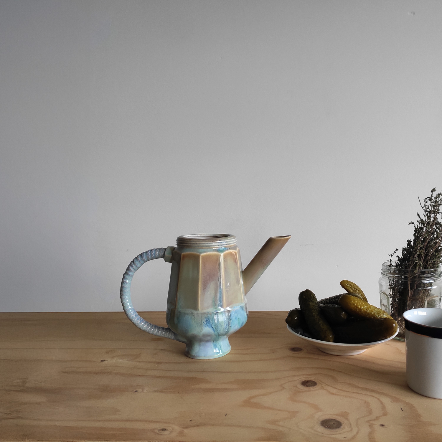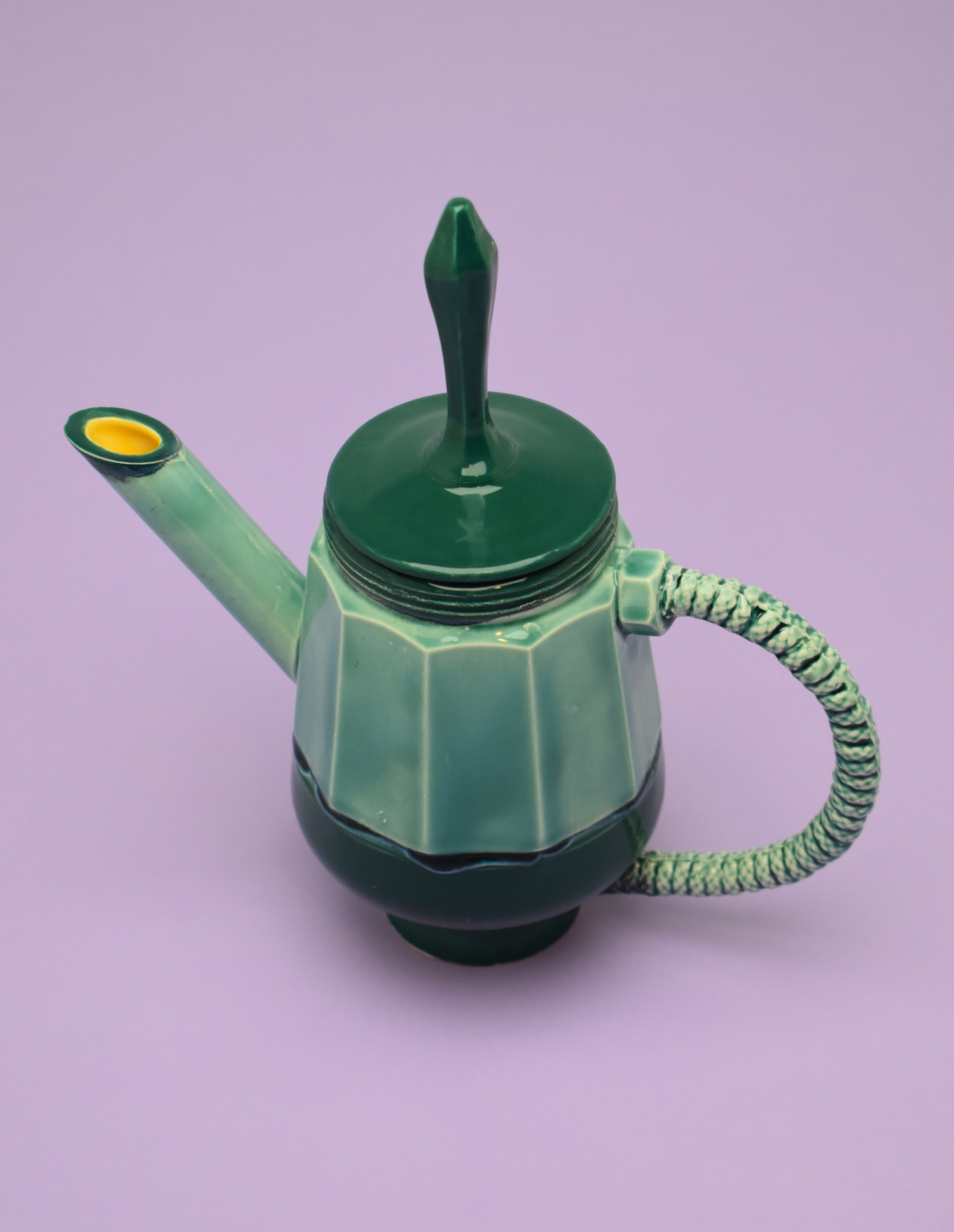 Me, Jack and Ilse repurposed malfunctioning items into a teapot. We used a foot of a glass, rope, srew nuts, an ice cream bowl, a broken moka pot, and metalwork scraps to build the spahe. Then, we made a plaster mould and slip casted functioning teapots.